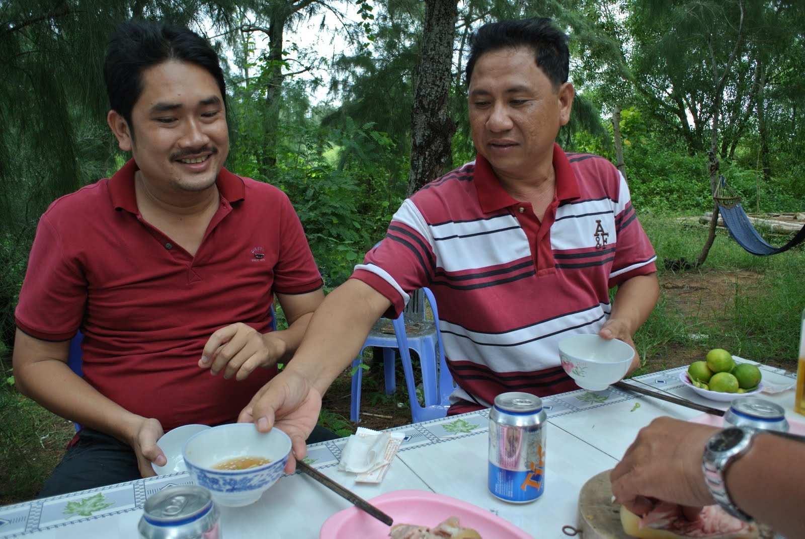 Ngay tại bàn, thượng khánh sẽ tự pha lấy nước mắm và chanh để chấm. Thượng khách cũng tự thái lấy thịt mà ăn. Phải nói là thịt bê ở đảo ngọt và mềm lắm, phần da cũng mềm, thịt rất là tươi, đúng là còn ấm ấm luôn. Tôi nghe nói là bò trên đảo không đủ cung cấp, nên họ cũng nhập thêm bò từ đất liền. Tuy nhiên bò từ đất liền phải thả cho ăn cỏ của đẩo từ 1-2 tháng, bò mới đạt được chất lượng.
